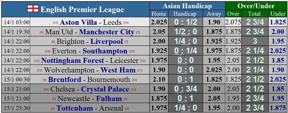 Lịch thi đấu vòng 20 Ngoại hạng Anh: Nóng bỏng trận derby Manchester, Tottenham phục kích Arsenal