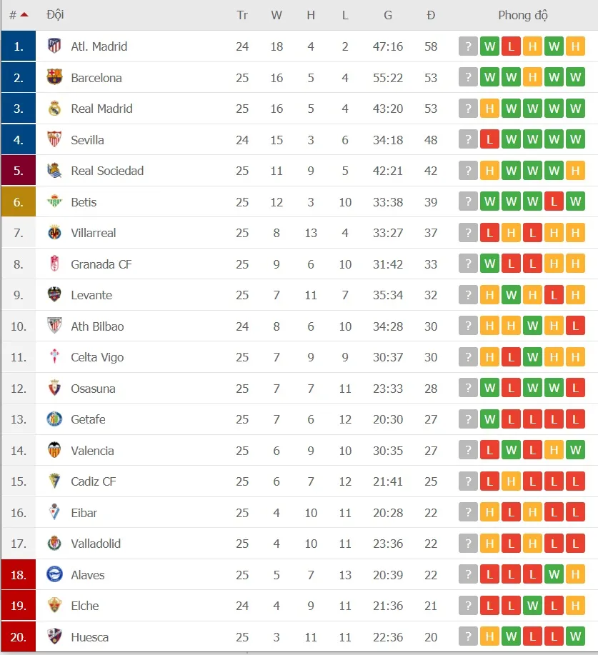 Trận hòa Real Sociedad 1-1 đã khiến Real Madrid đánh mất không ít cơ may bắt kịp Atletico ở ngôi đầu bảng. Khoảng cách bây giờ đã nới rộng thành 5 điểm dù Atletico còn 1 trận chưa đá. Tuần này, nếu để thua trên sân Wanda Metropolitano, thầy trò HLV Zinedine Zidane sẽ phải quên đi giấc mơ đăng quang Liga mùa này.