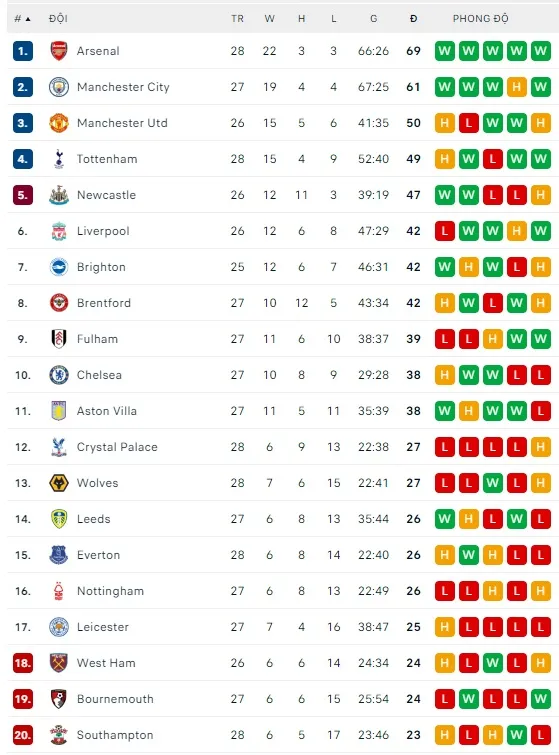 Man City vẫn nuôi hy vọng bám đuổi đội đầu bảng Arsenal dù kém xa đến 8 điểm. Còn 1 trận chưa đá trong tay, cơ hội để The Citizens chiếm lại ngôi đầu tùy thuộc vào khả năng duy trì chuỗi trận thắng của họ trước khi đối mặt với Arsenal trong trận lượt về trên sân nhà ngày 27-4 tới.