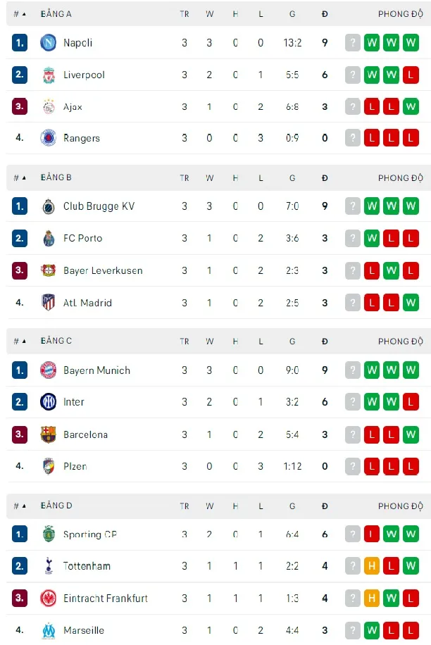 Vòng 4 thực tế là trận lượt về của các cặp đấu tuần qua và giới chuyên môn tin rằng nhiều đội sẽ sớm lấy vé vào vòng knock-out, như Napoli, Bayern, Brugge, Real Madrid, Man City, những đội đang có trong tay 9 điểm sau 3 trận toàn thắng.