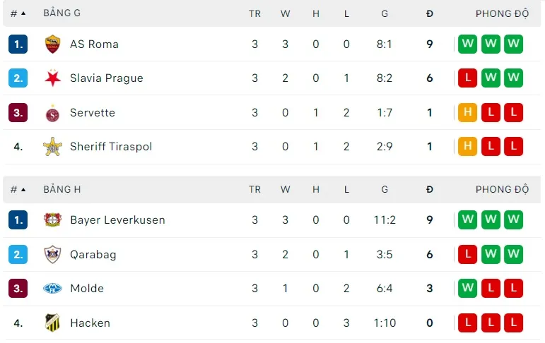 AS Roma kéo quân đến sân Slavia Prague ở bảng G sau khi thắng đối thủ 2-0 trong trận lượt đi ở Italia. Với tinh thần và chiến thuật của Jose Mourinho, Slavia Prague hầu như không có cửa ganh đua dù chơi trên sân nhà. Giới chuyên môn thậm chí còn cho rằng Roma dù có thua vẫn sẽ đoạt vé, bởi trận Servette - Sherrif Tiraspol nhiều khả năng lại hòa như lượt đi.