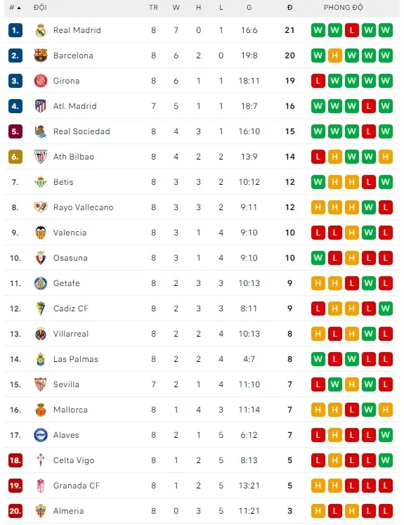 Câu chuyện với Barcelona thì khác. Xavi kéo quân đến sân Granada với mục tiêu lấy trọn 3 điểm trước đội bóng đang đứng áp chót bảng xếp hạng. Granada từng cầm hòa Barcelona cả 2 lượt ở mùa giải 2021-2022, nhưng họ đang chơi rất kém khi thăng hạng Liga lần này với chỉ 5 điểm sau 8 trận.