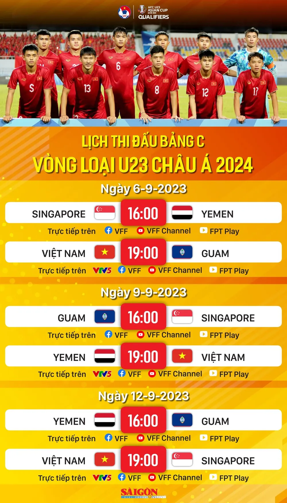 Theo lịch thi đấu, đội tuyển U23 Việt Nam lần lượt gặp các đội U23 Guam, Yemen và Singapore. Tham dự vòng loại có 43 đội được chia vào 11 bảng thi đấu vòng tròn tại 1 địa điểm. Kết thúc vòng bảng chọn 11 đội đứng đầu mỗi bảng và 4 đội đứng nhì có thành tích tốt nhất tham dự VCK tại Qatar vào năm sau.