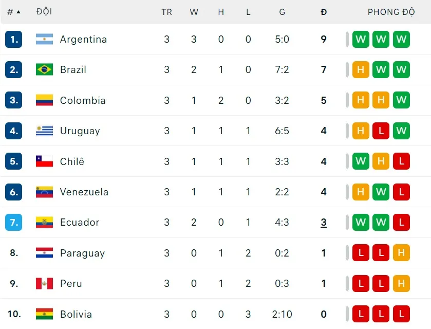 Argentina vươn lên chiếm ngôi đầu bảng tuần qua khi thắng Paraguay 1-0, trong lúc Brazil rơi xuống nhì bảng khi để Venezuela cầm hòa 1-1 trên sân nhà. Lượt đấu thứ 4, cả Argentina lẫn Brazil đều chơi trên sân khách, ở những nơi không dễ thắng.