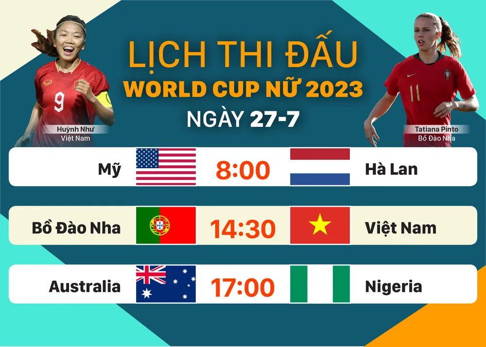 Lịch thi đấu World Cup nữ 2023 ngày 27-7