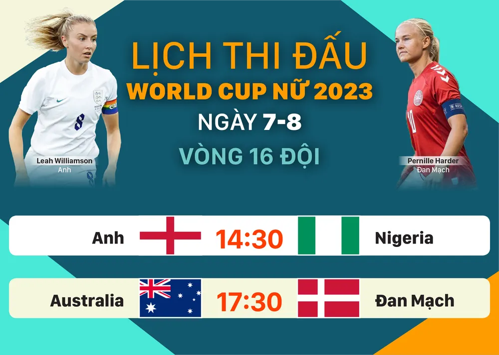 Lịch thi đấu World Cup nữ 2023: Anh  - Nigeria; Australia  – Đan Mạch