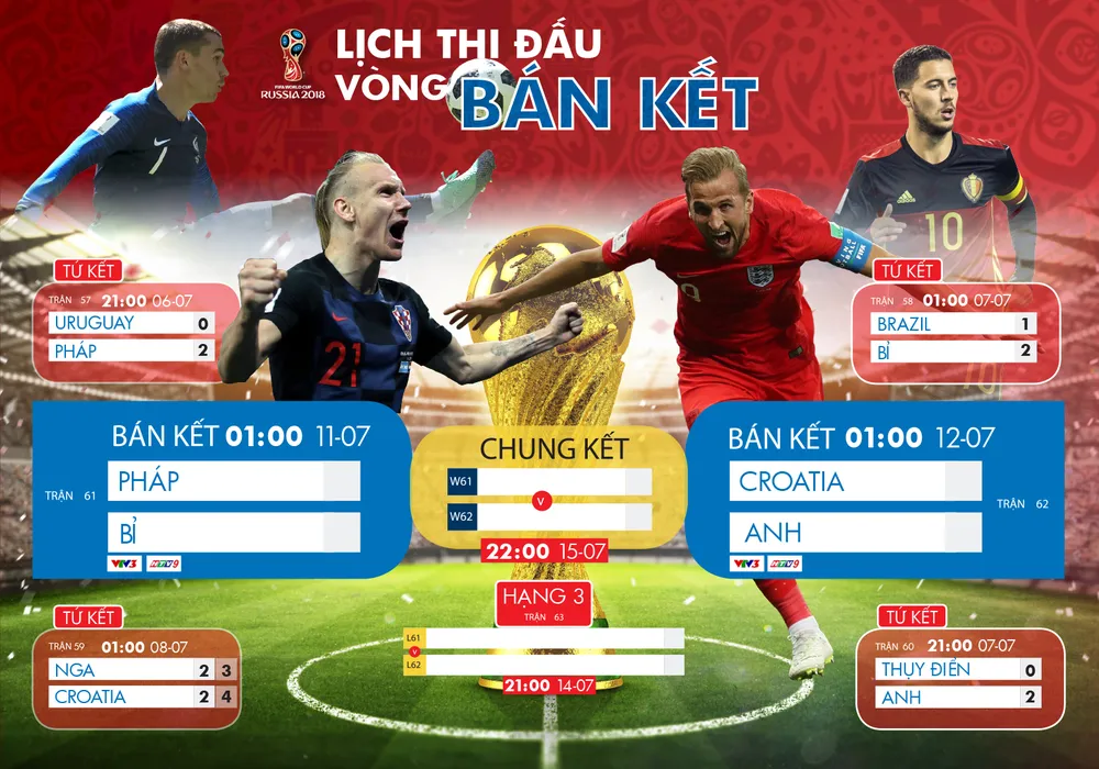 Lịch trực tiếp World Cup 2018 vòng bán kết và chung kết