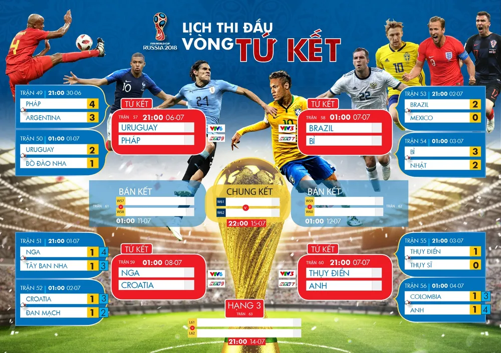 Lịch truyền hình trực tiếp World Cup 2018 - vòng tứ kết