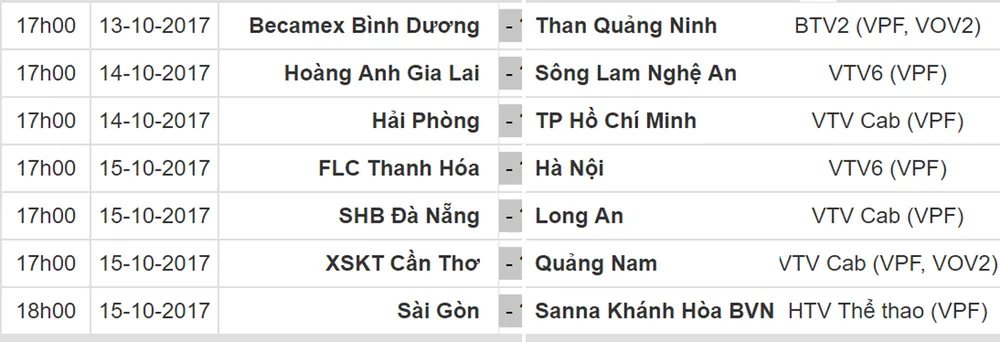 Vòng 21 - Toyota V.League 2017 diễn ra vào các ngày 13, 14 và 15-10.