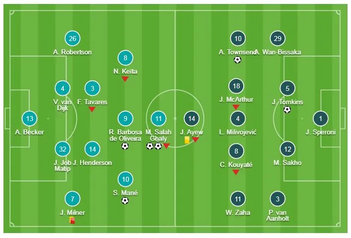 Liverpool: Salah 46', Firmino 53', Salah 75', Mane 90'+5