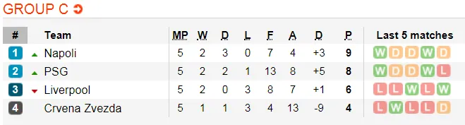 Thua Napoli 0-1 ở lượt đi, Liverpool cần phải thắng lại 1-0, 2-0 hoặc 3-1 mới đủ để loại đối thủ. Nếu thắng 1-0, Liverpool cũng sẽ chiếm ngôi nhì bảng nhờ hơn Napoli số bàn thắng (9/7 so với 7/5).