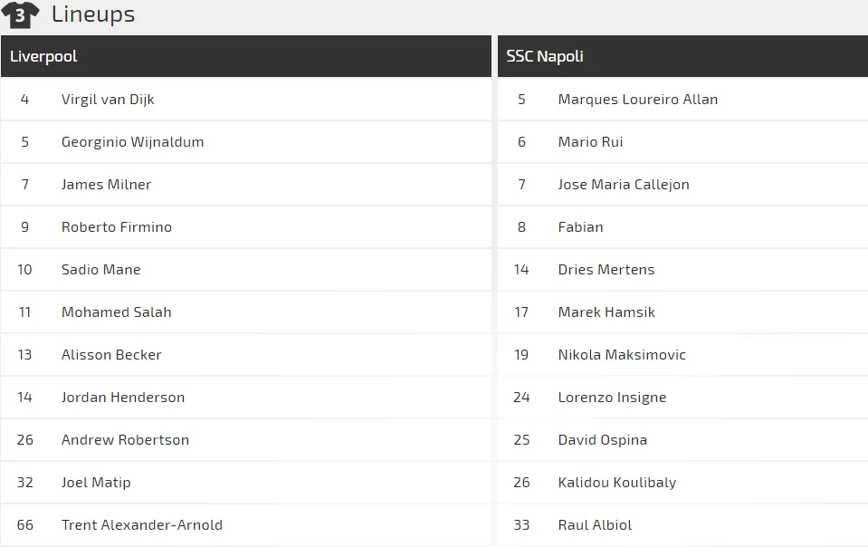 Trên lý thuyết, Napoli sẽ cố thủ ở Anfield để tìm một kết quả hòa có lợi cho mình, nhưng Ancelotti quả quyết là Napoli sẽ không thủ mà lên kế hoạch tấn công sòng phẳng để săn bàn. Nếu Napoli ghi 1 bàn, Liverpool cần phải có 3 bàn mới đủ loại họ.