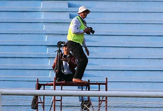 Nhiếp ảnh gia tự leo lên khu vực camera của BTC.