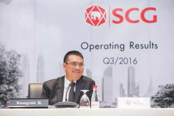 Ông Roongrote Rangsiyopash (ảnh), Chủ tịch kiêm Tổng giám đốc Điều hành SCG, đã công bố kết quả kinh doanh trước kiểm toán của tập đoàn trong quý 3- 2016 với doanh thu từ hoạt động bán hàng giảm 5%, còn 3,012 tỷ USD do giảm giá dầu và mức giảm sản lượng cũng như giá thành xi măng, đồng thời giảm 4% so với quý trước do ảnh hưởng của thời vụ. Theo đó, lợi nhuận trong quý này đạt được 404 triệu USD, tăng trưởng 57% so với cùng kỳ năm ngoái, chủ yếu nhờ kết quả kinh doanh của ngành hóa dầu, trong đó bao gồm cả tài sản thuế thu nhập hoãn lại xấp xỉ 52 triệu USD và mức giảm 12% so với quý trước trong lĩnh vực xi măng, do tác động của yếu tố thời vụ làm giảm hiệu quả hoạt động của lĩnh vực này. Lợi nhuận của SCG trong 9 tháng đầu năm 2016 đạt 1,237 tỷ USD, tăng 28% so với cùng kỳ năm ngoái cũng chủ yếu nhờ vào hoạt động hiệu quả ngành công nghiệp hóa dầu, trong khi đó Doanh thu từ Bán hàng chỉ đạt 9,183 tỷ USD, giảm 3% so với năm trước, do nhu cầu xi măng nội địa và giá dầu giảm. Doanh thu từ xuất khẩu - chiếm 27% trong Doanh thu hợp nhất từ hoạt động bán hàng của SCG giảm 11% so với cùng kỳ năm trước xuống 2,462 tỷ USD.