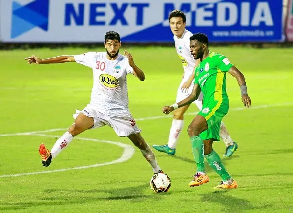 Hiệp 1 trận đấu giữa “2 người anh em” Đà Nẵng và Hà Nội trên sân Hòa Xuân không có nhiều điều đáng nói, ngoại trừ tình huống ở phút 30 khi trọng tài Ngô Duy Lân quyết định rút thẻ đỏ trực tiếp đối với Hoàng Vũ Samson sau pha chơi cao chân khiến Britez bị thương ở đầu.