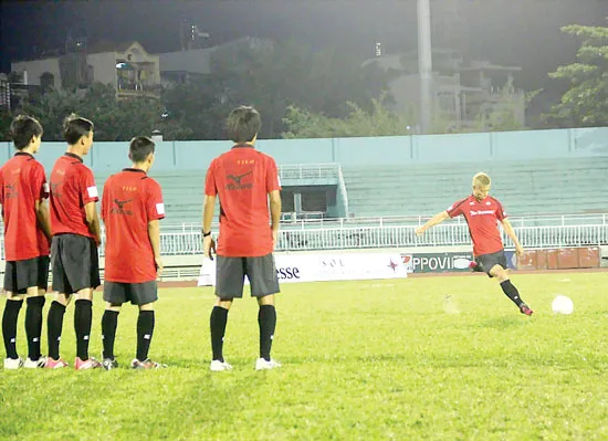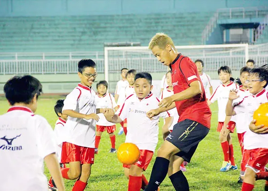Tối 2-6, tại Sân vận động Thống Nhất, TPHCM, 50 học sinh người Việt Nam và 50 học sinh người Nhật Bản, cùng độ tuổi 6-12, đang sinh sống tại Việt Nam, được lựa chọn sau khi đăng ký tham dự trên mạng, đã hết mình với “Lớp học bóng đá cùng Keisuke Honda” - Honda’s Soltilo Soccer School in Vietnam 2015.
