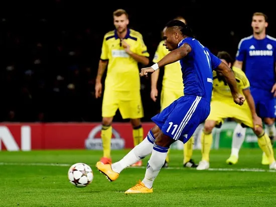 Trên chấm 11m, Didier Drogba ghi bàn vào lưới Maribor, nâng tỷ số lên 2 - 0 cho Chelsea.