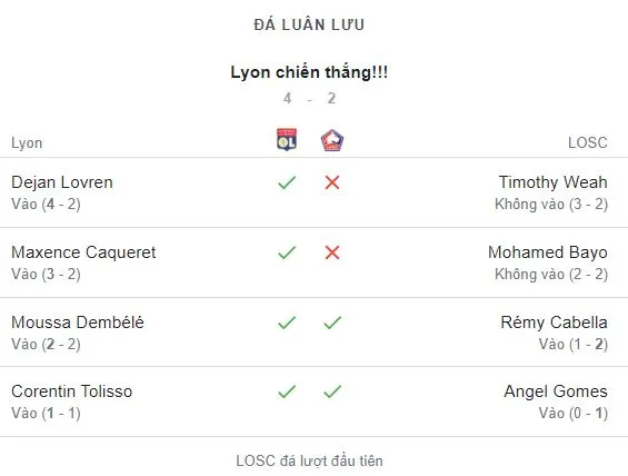 ⚽ Luân lưu: Lyon thắng Lille 4-2