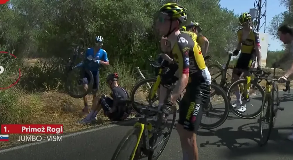 Cuộc chiến chỉ thật sự bắt đầu ở khoảng 80km cuối cùng khi một nhóm 8 tay đua vượt lên để có lợi thế hơn 1 phút 20 giây khi vào chân đèo Alto de San Jeronimo. Cuộc rượt đuổi đang diễn ra hấp dẫn thì xảy ra tai nạn chùm đông khi cách đích hơn 54 km, trong đó có áo đỏ Odd Christian Eiking (Intermarché–Wanty–Gobert Matériaux) và ứng cử viên nặng ký Primoz Roglic (Jumbo-Visma) bị té. Chính vì thế, toàn đội Jumbo-Visma đã dừng lại giúp đưa Primoz Roglic trở lại với đoàn đông.