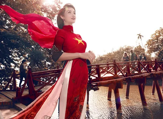 ° Mai Thu Huyền (ảnh) gây ấn tượng với bộ sưu tập áo dài quốc kỳ 16 nước mang tên “Thế giới như tôi thấy” của Đỗ Trịnh Hoài Nam, với mong muốn đề cao mối quan hệ ngoại giao và mang hình ảnh áo dài Việt Nam ra thế giới. Nhà thiết kế này đã mang các di sản, kiến trúc đặc trưng của mỗi đất nước vào tà áo dài truyền thống của Việt Nam.
