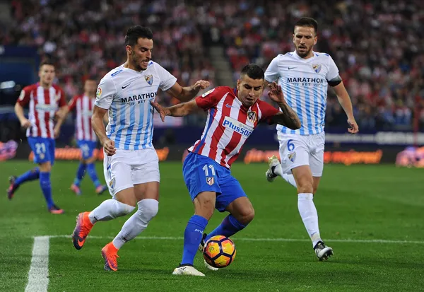 Correa (giữa) khống chế bóng trước hàng thủ Malaga