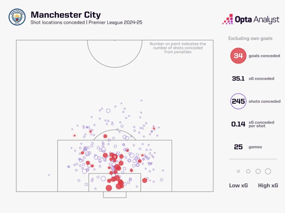 Chỉ số xG của Man City tại Premier League 2024-25
