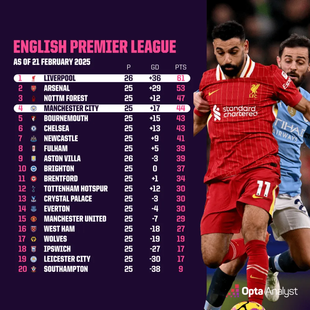 Nhưng sau chỉ 25 trận đấu mùa này, họ đã thua bảy lần. Phần lớn điều này đến từ giai đoạn đã đề cập trước đó vào tháng 11 và tháng 12, khi họ thua Bournemouth, Brighton, Tottenham, Liverpool, Manchester United và Aston Villa trong vòng chỉ tám trận. Trận thua duy nhất khác của họ trong tám trận kể từ đó là trước Arsenal, với tỷ số 1-5 tại Emirates Stadium.