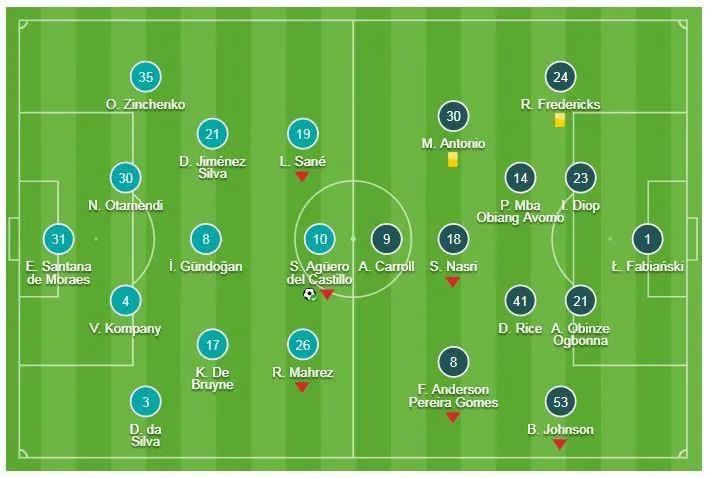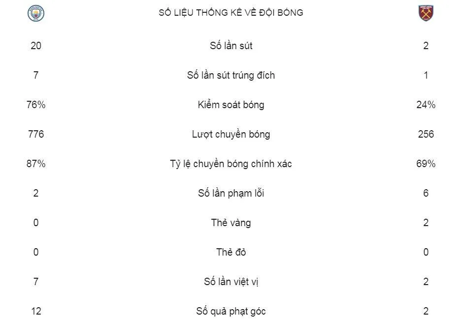 Chủ nhà Man City có chiến thắng vất vả trước đội khách West Ham thi đấu đầy quyết tâm. Bàn thắng duy nhất trận đến từ tình huống tận dụng 11m của Aguero. Thắng suýt sao 1-0, đoàn quân HLV Pep Guardiola có 68 điểm, qua đó tiếp tục bám đuổi ngôi đầu khi chỉ kém đội đầu bảng Liverpool 1 điểm sau 28 vòng đấu.