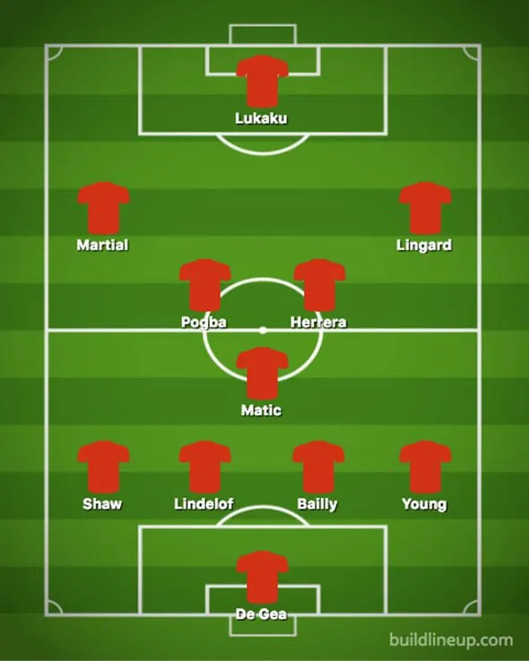 Manchester United (4-3-3): De Gea; Young, Bailly, Lindelof, Shaw; Matic, Herrera, Pogba; Lingard, Martial, Lukaku