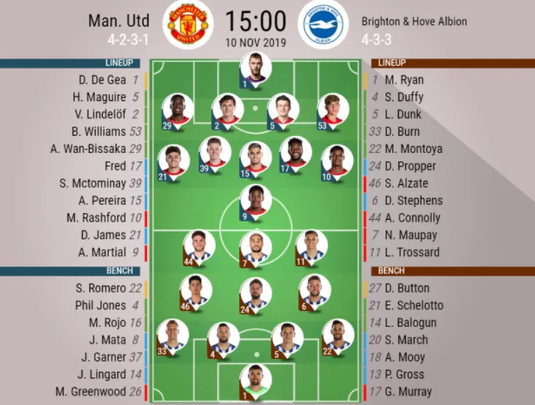 Đúng như lời hứa trước đó, HLv Ole Solskjaer đã tung đội hình mạnh nhất với quyết tâm đánh bại Brighton, đối thủ mà họ bất bại trong 11 trận tiếp đón gần đây (Lần cuối cùng, Brighton giành điểm ở Old Trafford là trận hòa 1-1 vào tháng 3-1983).
