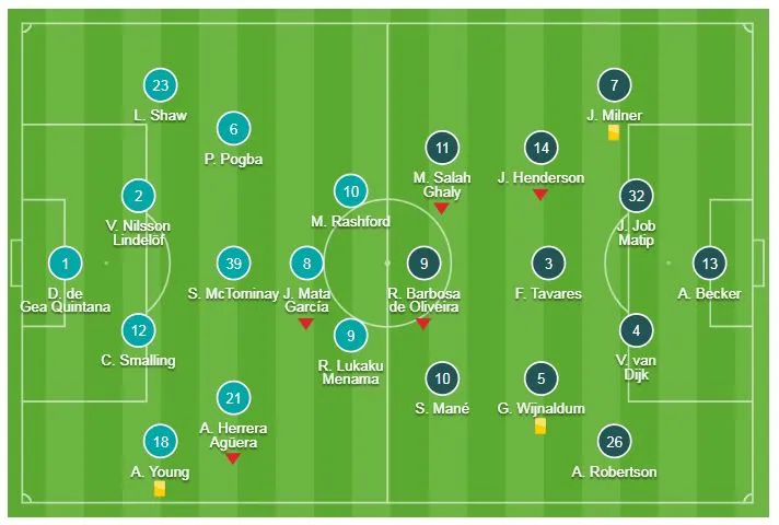 Trận đấu được trong chờ giữa Man Utd và Liverpool đã kết thúc không bàn thắng nhưng điểm nổi bật của trận derby này không nằm ở yếu tốt chuyên môn mà là các ca chấn thương. Chỉ trong 45 phút hiệp 1 HLV Solskjaer và Jurgen Klopp buộc phải thay tới 4 cầu thủ: Pereira thay Herrera, Lingard thay Mata, Alexis Sanchez thay Lingard và Sturridge thay Roberto Firmino.
