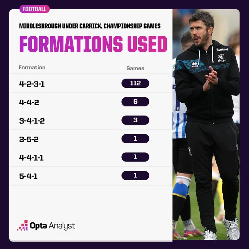 Điều này từng khiến ông nhận chỉ trích tại Middlesbrough. Vì vậy, sau Amorim – người cũng bị chê trách vì quá cứng nhắc với sơ đồ của mình – Carrick có lẽ cần linh hoạt hơn một chút.