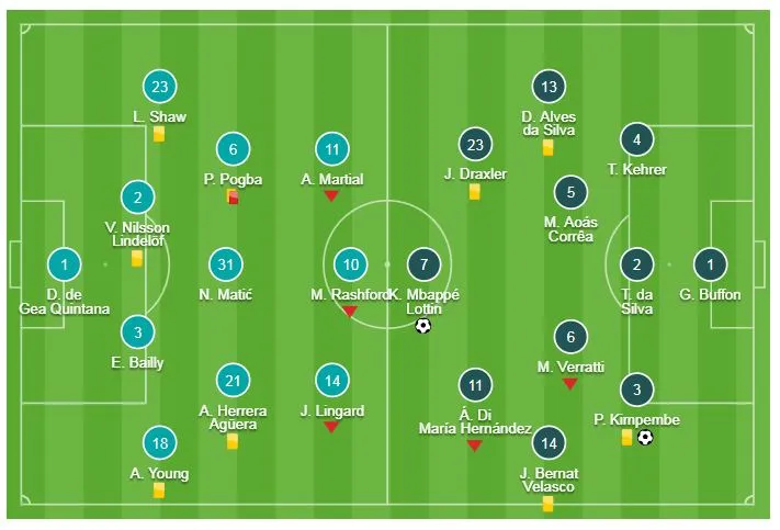 HLV Solskjaer đang nắm giữ thành tích 11 trận bất nhưng trước PSG của HLV Tuchel, "Quỷ đỏ" Old Trafford bất ngờ gục ngã. Người cũ Di Maria thi đấu xuất thần, Kimpembe sút cận thành hạ De Gea mở tỷ số, Mbappe nâng tỷ số 2-0 và Pogba nhận thẻ vàng thứ 2 rời sân. Trận lượt về Man United sẽ gặp nhiều khó khăn khi vắng Paul Pogba.