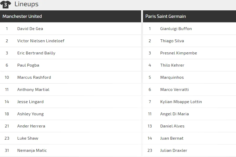 Đẳng cấp của Draxler, Mbappe, Marco Verratti, Di Maria và cả kinh nghiệm của thủ thành Gigi Buffon cho PSG một nền tảng chắc chắn ở trận này. Và chúng tôi tin họ thậm chí trội hơn dàn ngôi sao trẻ của Manchester United như Paul Pogba, Marcus Rashford, Jesse Lingard, Anthony Martial và thủ thành De Gea.