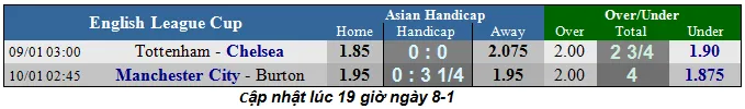 Khả năng thắng cuộc: Manchester City 48%, hòa 35% Burton 17%