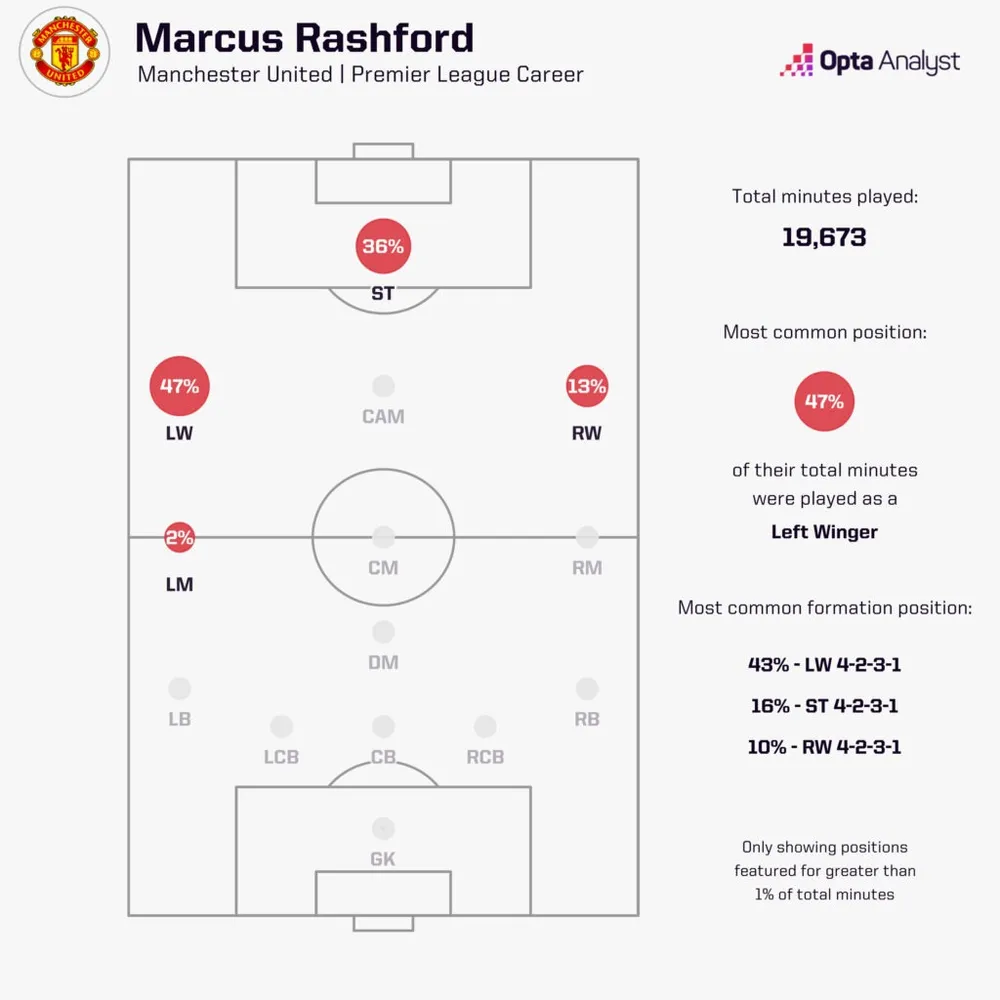 Vị trí của Marcus Rashford chơi cho Man Utd