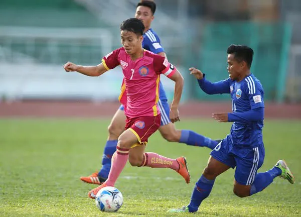 CLB Sài Gòn (áo đỏ) bị QNK Quảng Nam cầm hòa 0-0 trên sân nhà. Ảnh: Dũng Phương