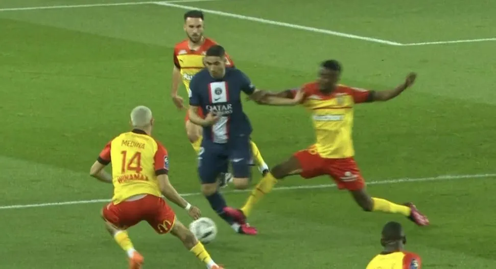 Khi trận đấu còn chưa có bàn thắng, Lens đã "tự bắn vào chân". Tiền vệ Salis Abdul Samed lãnh thẻ đỏ trực tiếp, hệ quả sau cú đạp nguy hiểm vào mắt cá chân Achraf Hakimi. Lợi thế quân số giúp PSG dễ dàng định đoạt thế cục.