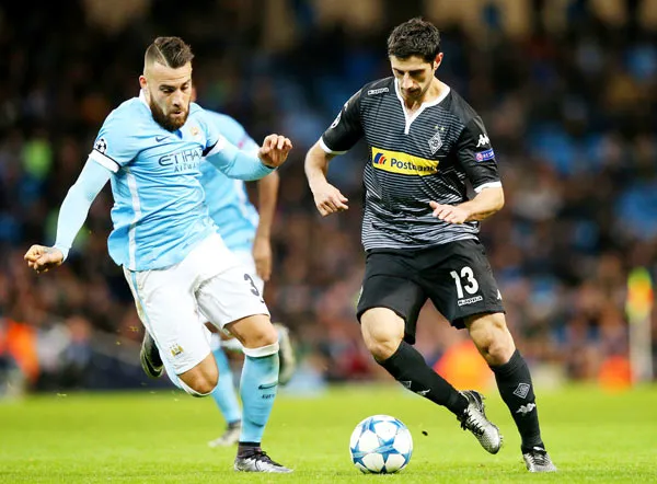Stindl (phải) của M’Gladbach đột phá trước Otamendi