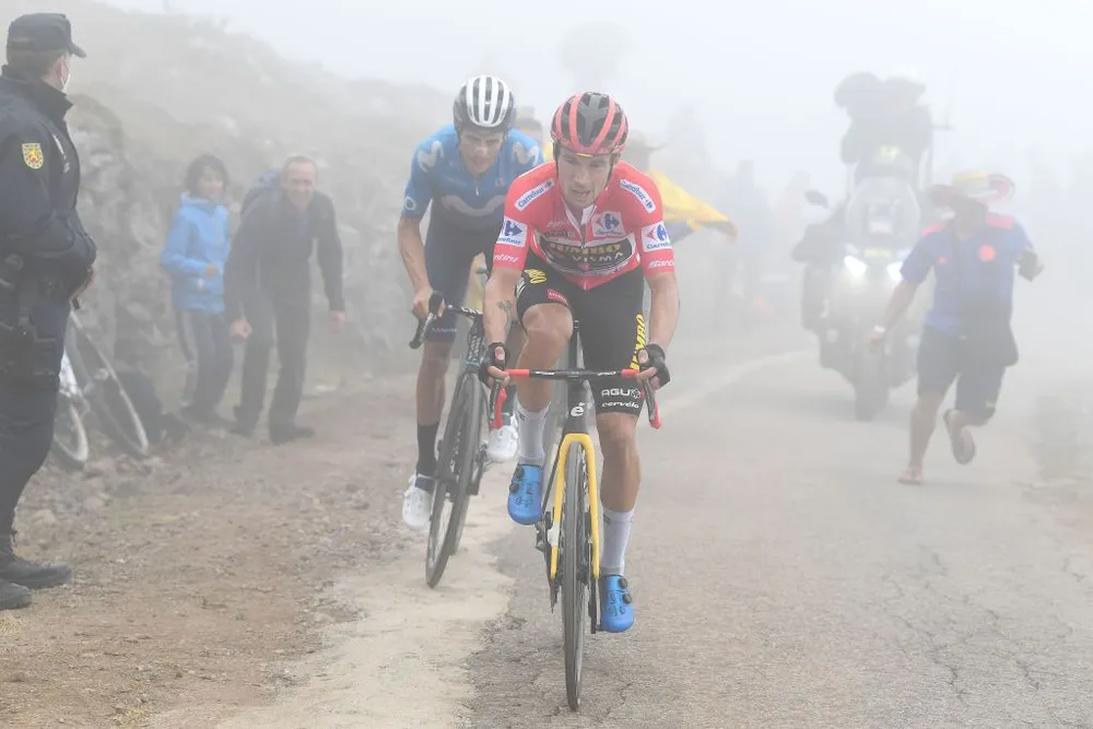 Áo đỏ Roglic đang bị kẹt ở nhóm sau Khoảng cách này được duy trì đến còn còn 40km trước khi các tay đua mạnh bắt đầu tăng tốc để thu ngắn cách biệt. Còn 10km khi vào đến chân đèo Alto d'El Gamoniteiru có dốc như dựng dứng để về đích, áo đỏ Primoz Roglic vẫn ở nhóm ba và đi sau nhóm đầu 2 phút 11 giây. Nhưng với sở trường leo núi, Primoz Roglic và Egan Bernal (Ineos Grenadiers) bắt đầu tăng tốc.
