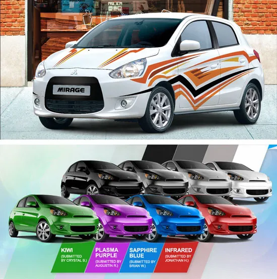 Các màu xe dòng sản phẩm Mitsubishi Mirage.