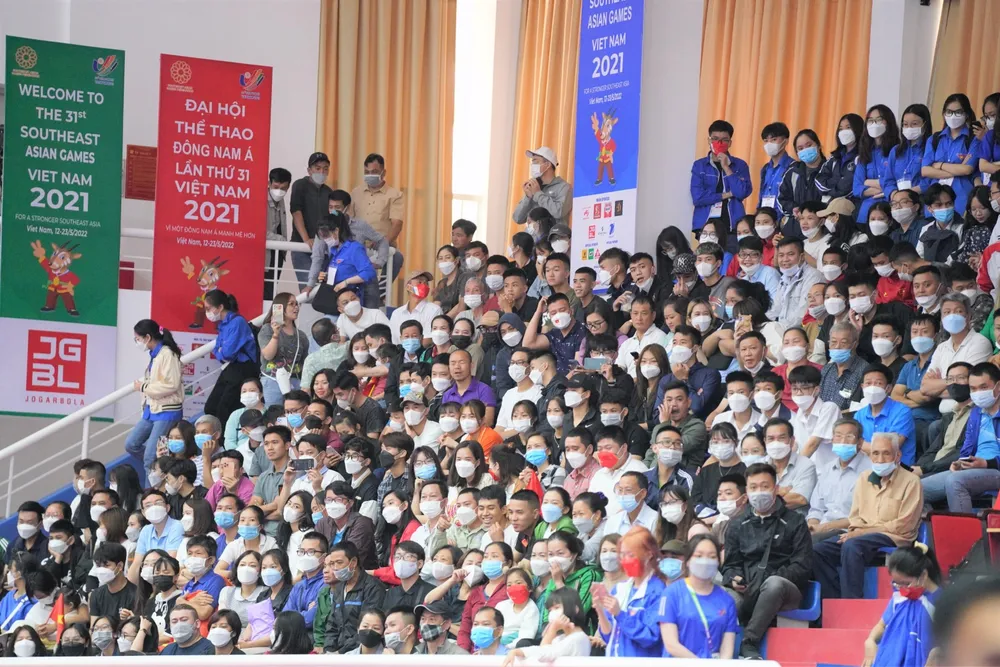 Khán giả trong nhà thi đấu cổ vũ nhiệt tình cho các vận động viên