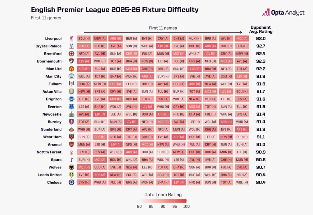 Đáng khích lệ hơn, hiệu suất tấn công đã được cải thiện. Mùa trước, Man United đạt trung bình 1.24 xG không phạt đền/trận dưới thời Amorim. Mùa này, con số đó đã tăng 20% lên 1.48 xG không phạt đền/trận, đạt mức cao thứ sáu Premier League. Điều này phần lớn nhờ vào những sự bổ sung chất lượng như Bryan Mbeumo, Matheus Cunha và Benjamin Sesko. Mức tăng trưởng này càng đáng kể khi Man United phải đối mặt với lịch thi đấu khó khăn thứ năm giải đấu trong 11 trận đầu tiên, chạm trán các đối thủ nặng ký như Arsenal, Man City, Chelsea, Liverpool và Tottenham.