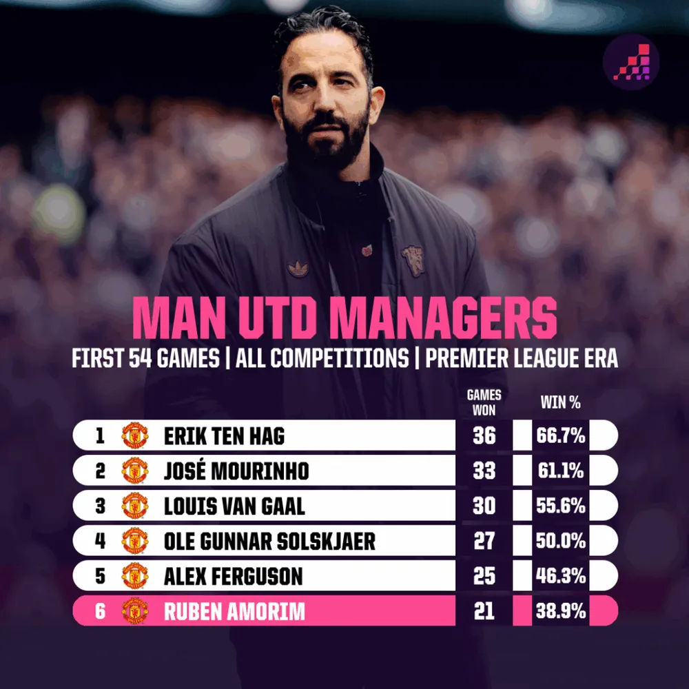 Lựa chọn hệ thống ba hậu vệ của Amorim là tâm điểm của mọi chỉ trích. Khi vận mệnh của Man United không cải thiện, người ta nghi ngờ về sự phù hợp của sơ đồ này với bản sắc CLB. Mặc dù Amorim kiên định với triết lý của mình, đội bóng đã có thời điểm rơi xuống mức 0.75 điểm/trận (tính trung bình 12 trận gần nhất), gần bằng một nửa so với thời điểm Erik ten Hag bị sa thải.