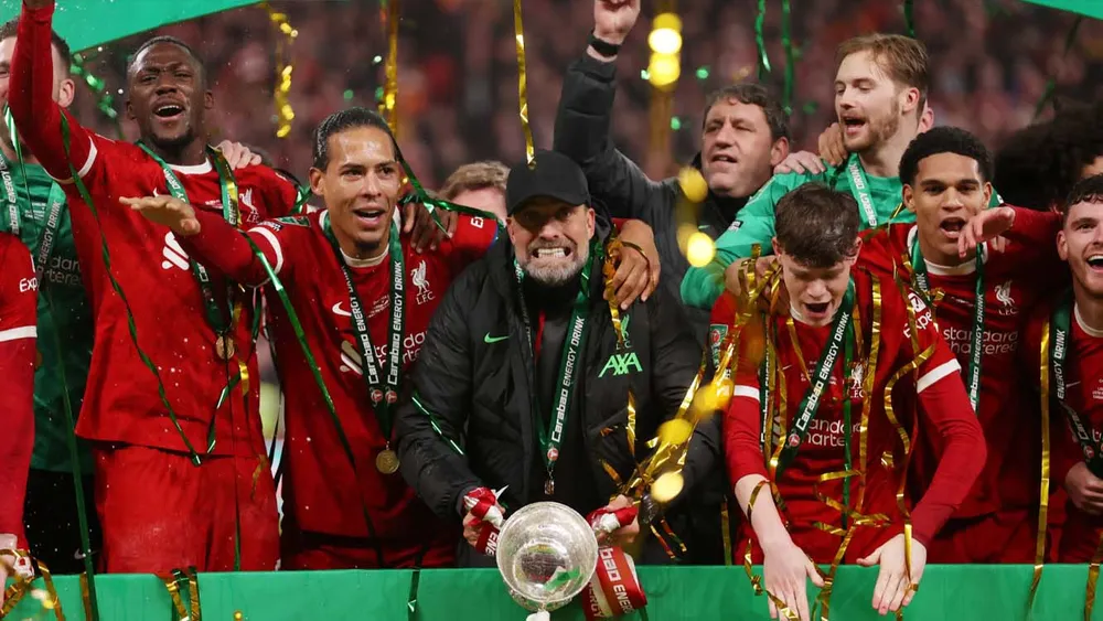 Jurgen Klopp và Liverpool ăn mừng chiến thắng tại Carabao Cup 2024. Robbie Jay Barratt - AMA/Hình ảnh Getty
