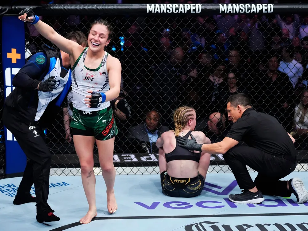 “Mỹ nhân xinh đẹp” sinh năm 1993 quê ở Guadalajara vốn chưa bao giờ muốn tự làm xấu bản thân mình, dù đã bước vào bên trong Bát giác đài. Ở trong trận đấu đoạt đai vô địch của Shevchenko, trận đấu chắc chắn sẽ được bình chọn là “Một trong những cuộc lật đổ vĩ đại nhất trong năm 2023 của làng MMA - UFC thế giới”, Grasso vẫn sơn móng tay và móng chân màu trắng, những biểu hiện đậm chất con gái không thể cản cô thắng cực kỳ ấn tượng!