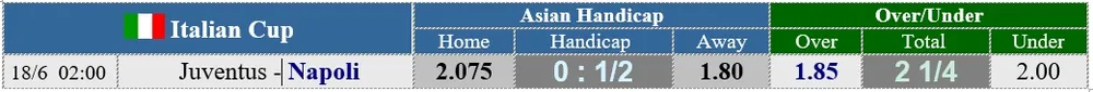 Juventus đang săn đuổi chiếc cúp Italia thứ 14 trong lịch sử và họ hy vọng đánh bại đội từng thắng giải 5 lần như Napoli trong trận đấu ở Rome. Juventus đang ghi kỷ lục thắng Serie A 8 mùa liên tiếp, nhưng chuỗi 4 năm liên vô địch Cúp Italia của họ đã kết thúc mùa trước.