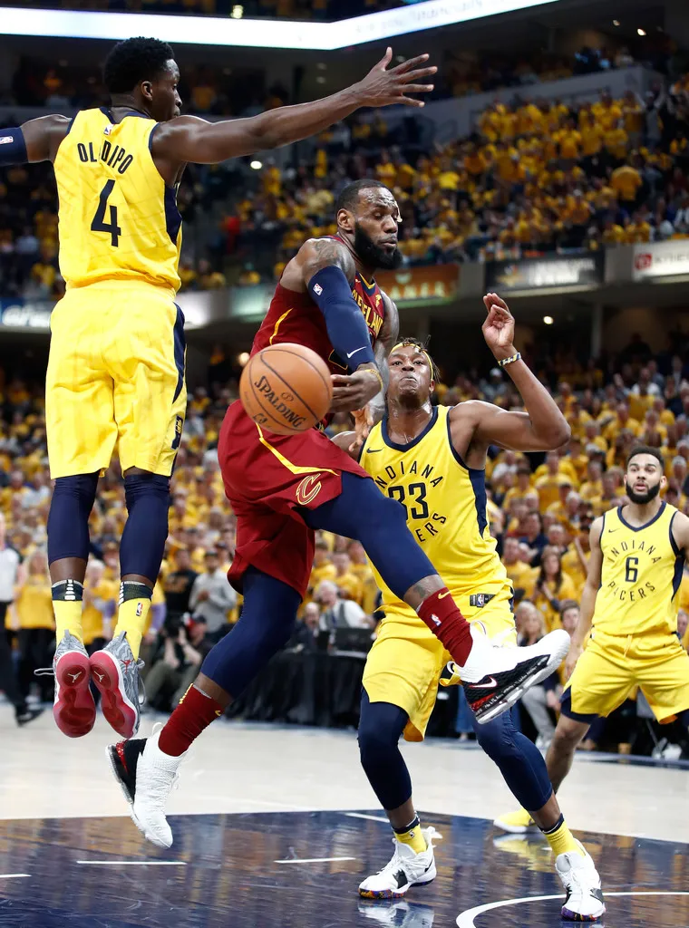 Trong trận đấu thứ 6 diễn ra trên sân Bankers Life Fieldhouse, Oladipo đã chơi cực hay, anh này đã ghi được 28 điểm, có 13 pha tranh bóng bật bảng thành công và thực hiện được 10 đường kiến tạo ghi điểm cho các đồng đội của mình. Màn trình diễn của Oladipo hoàn toàn làm lu mờ sự hiện diện trên sân của James, người chỉ ghi được 22 điểm, có 5 pha tranh bóng bật bảng thành công và thực hiện 7 đường kiến tạo ghi điểm cho các đồng đội. Sự khác biệt giữa kẻ thắng – người bại, với khoảng cách điểm số lên đến 34 điểm, vì thế là hoàn toàn rõ ràng. Cavs bị “ép” phải bước vào trận đấu thứ 7, nơi tất cả mọi toan tính đều quay lại vạch xuất phát, trở thành con số “0” tròn trĩnh.