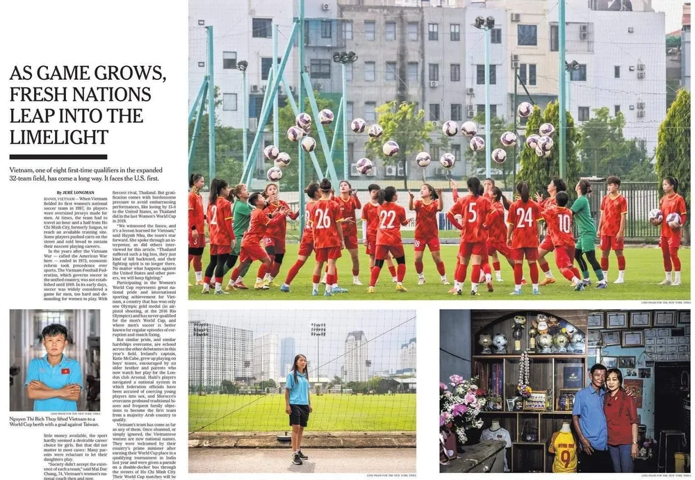 New York Time cũng nhắc đến Nguyễn Thị Bích Thùy, người hùng giúp đội tuyển nữ Việt Nam giành quyền tham dự World Cup. “Bích Thùy đã ghi bàn thắng quan trọng nhất trong lịch sử cho ĐT nữ Việt Nam bằng một cú chạm khéo léo bằng chân phải và một cú sút quyết định mang tính lịch sử bằng chân trái trong chiến thắng 2-1 trước Đài Bắc Trung Hoa ở trận play-off năm 2022. Cô giành bàn thắng cho cha mình, người đã qua đời vào năm 2016”.