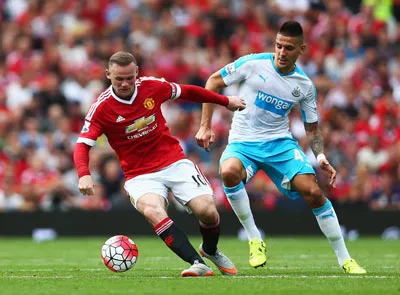 Wayne Rooney (trái, Man.United) kiểm soát bóng trước Aleksandar Mitrovic (Newcastle).